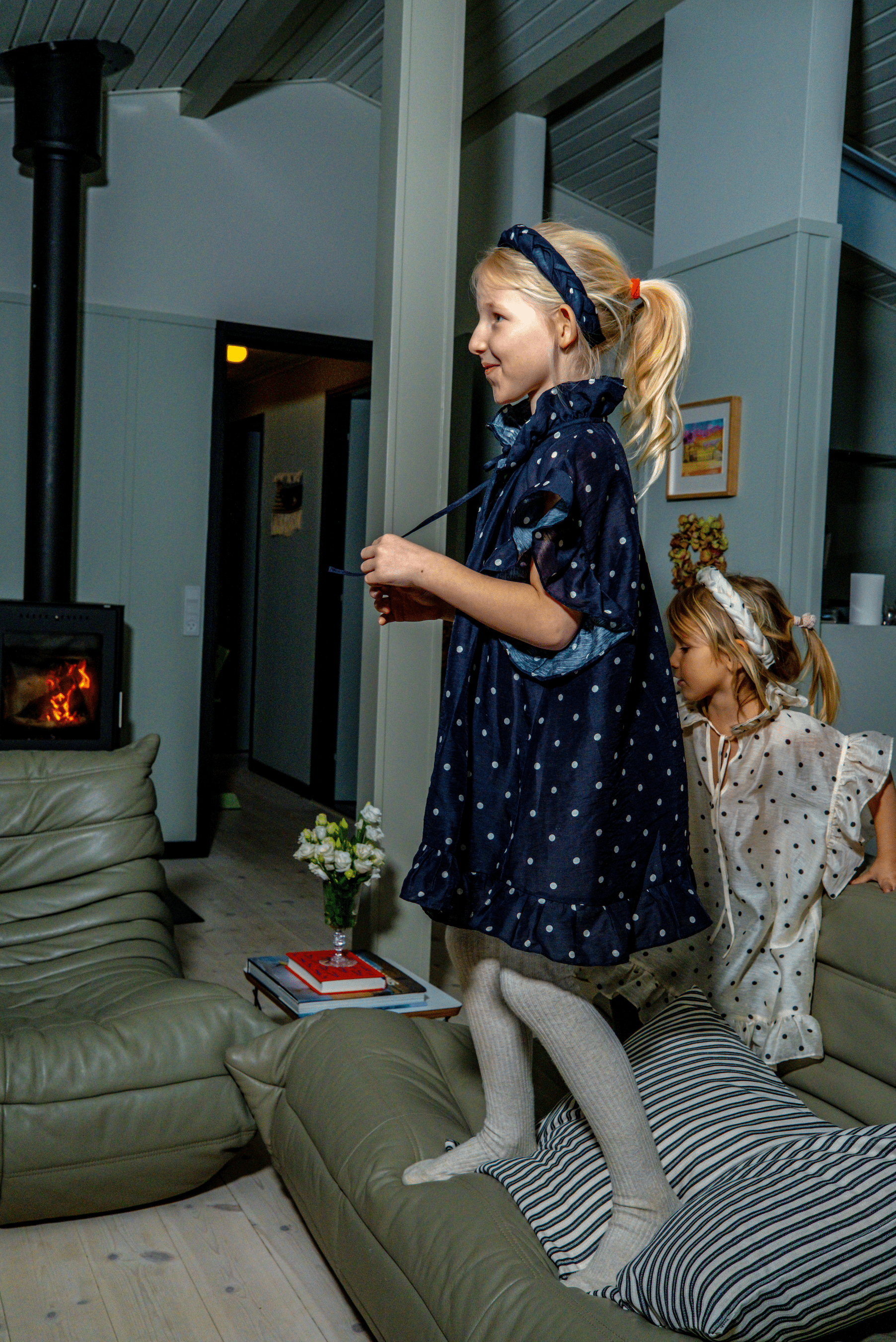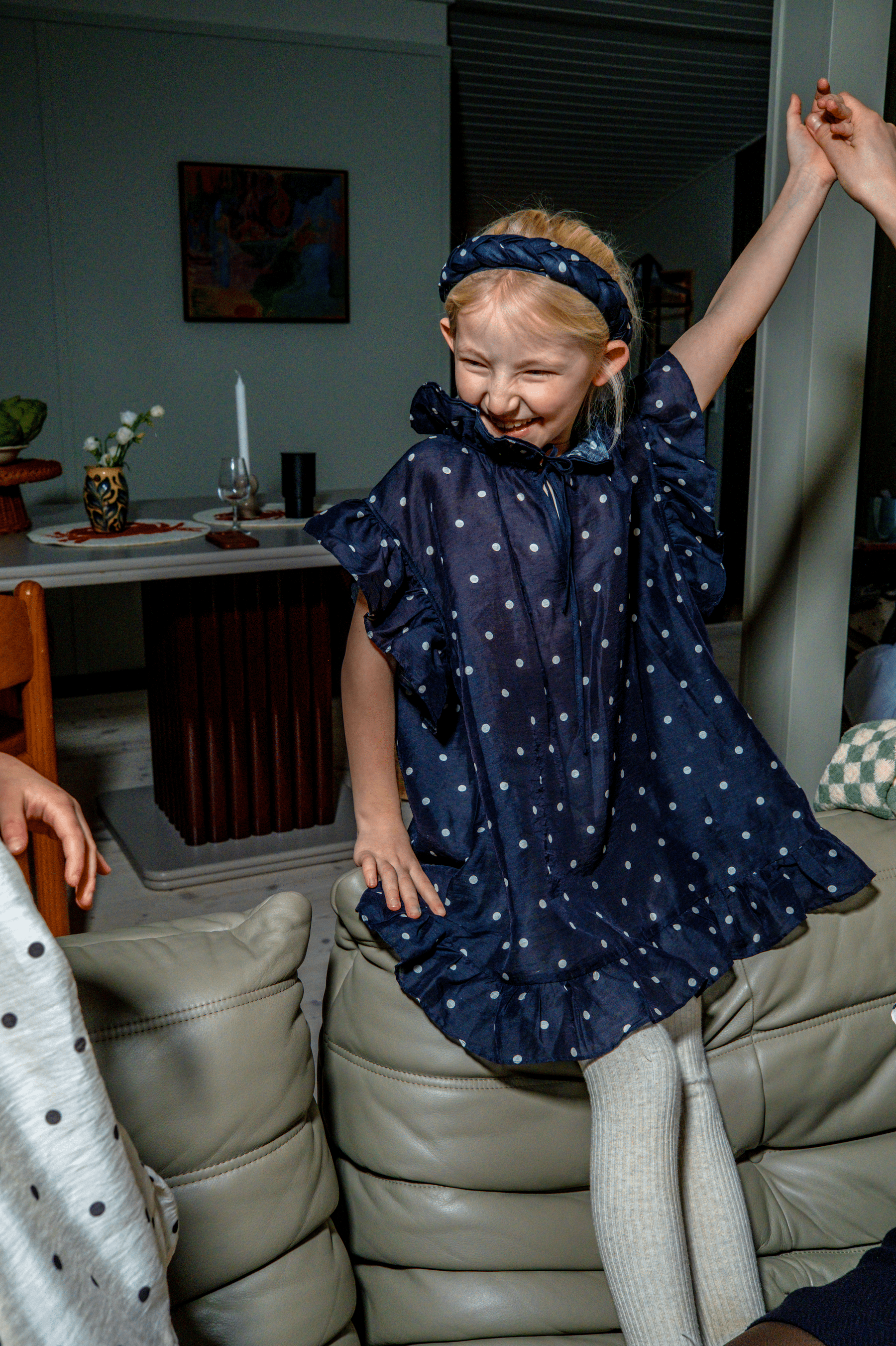 Introducing the SOFT DAWN SARI MINI – Because the most beautiful stories are the ones we share with our little ones. Designed to be a part of your family’s "Home Stories," a versatile style that can be worn as a dress or a blouse. Whether worn as a flowing dress for a Sunday morning at the breakfast table or styled as a blouse for a family outing, its airy silhouette ensures comfort and elegance for the smallest members of the house. Available in our timeless Ivory and Navy dots, it’s a piece made for creating memories that last.